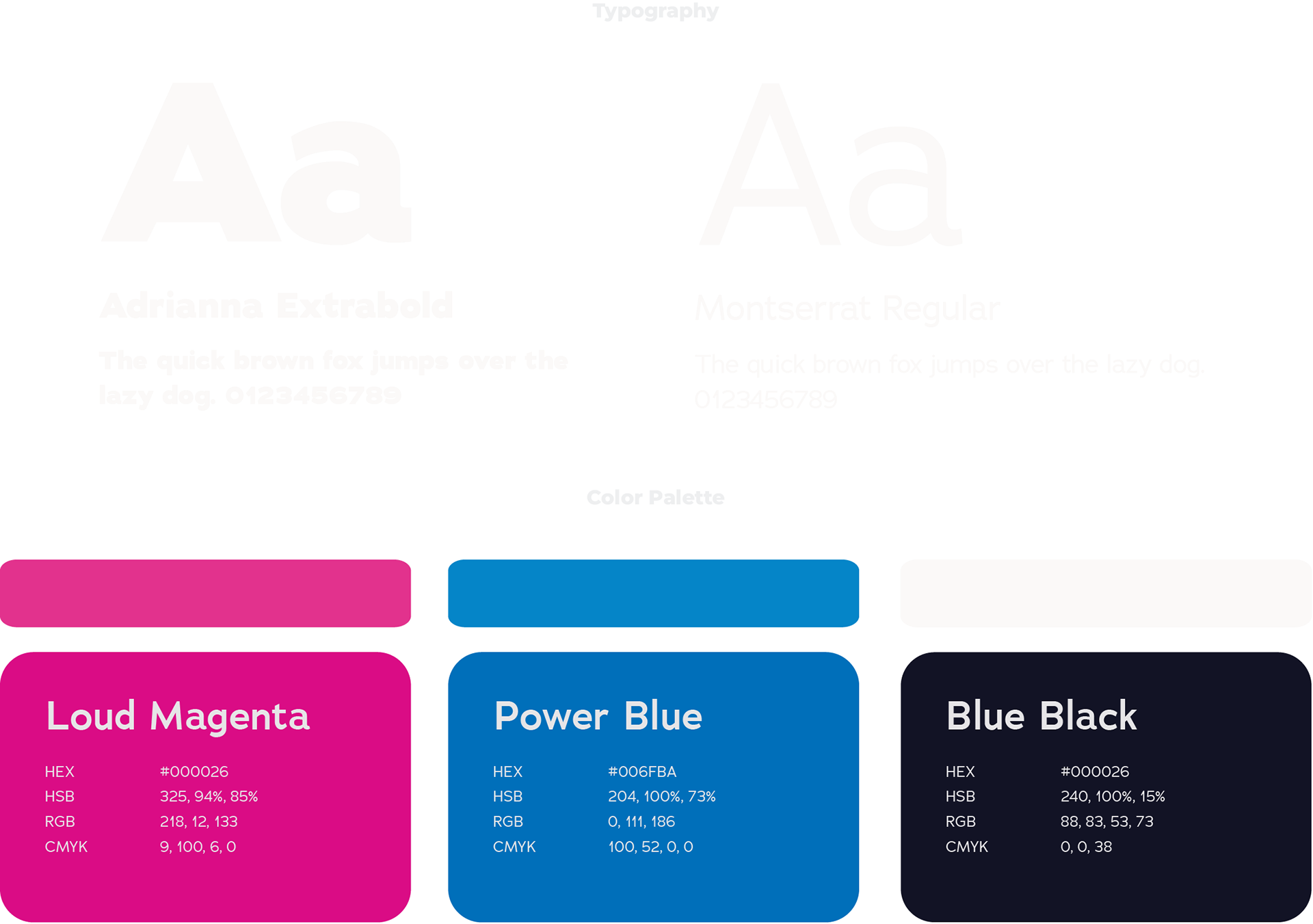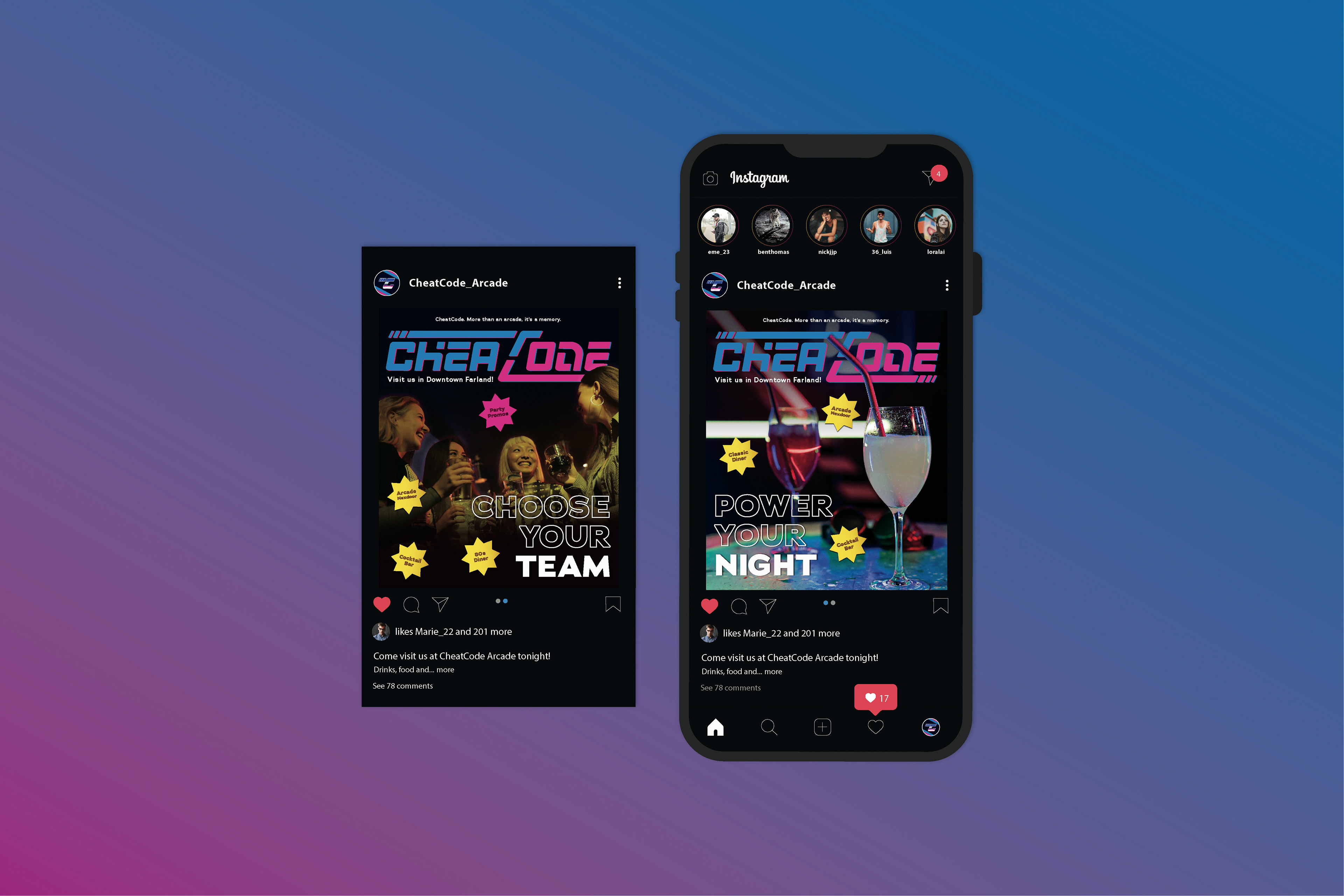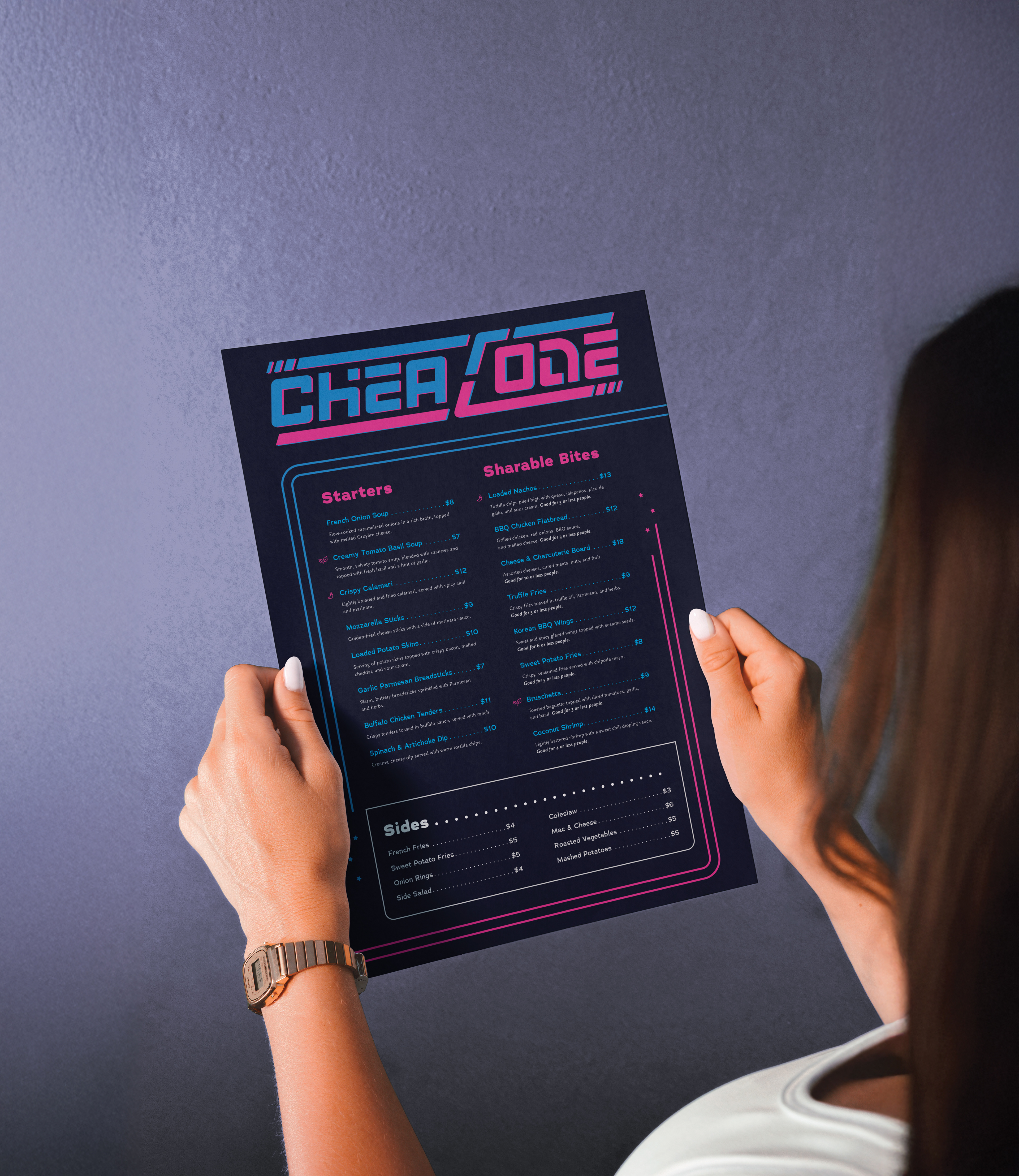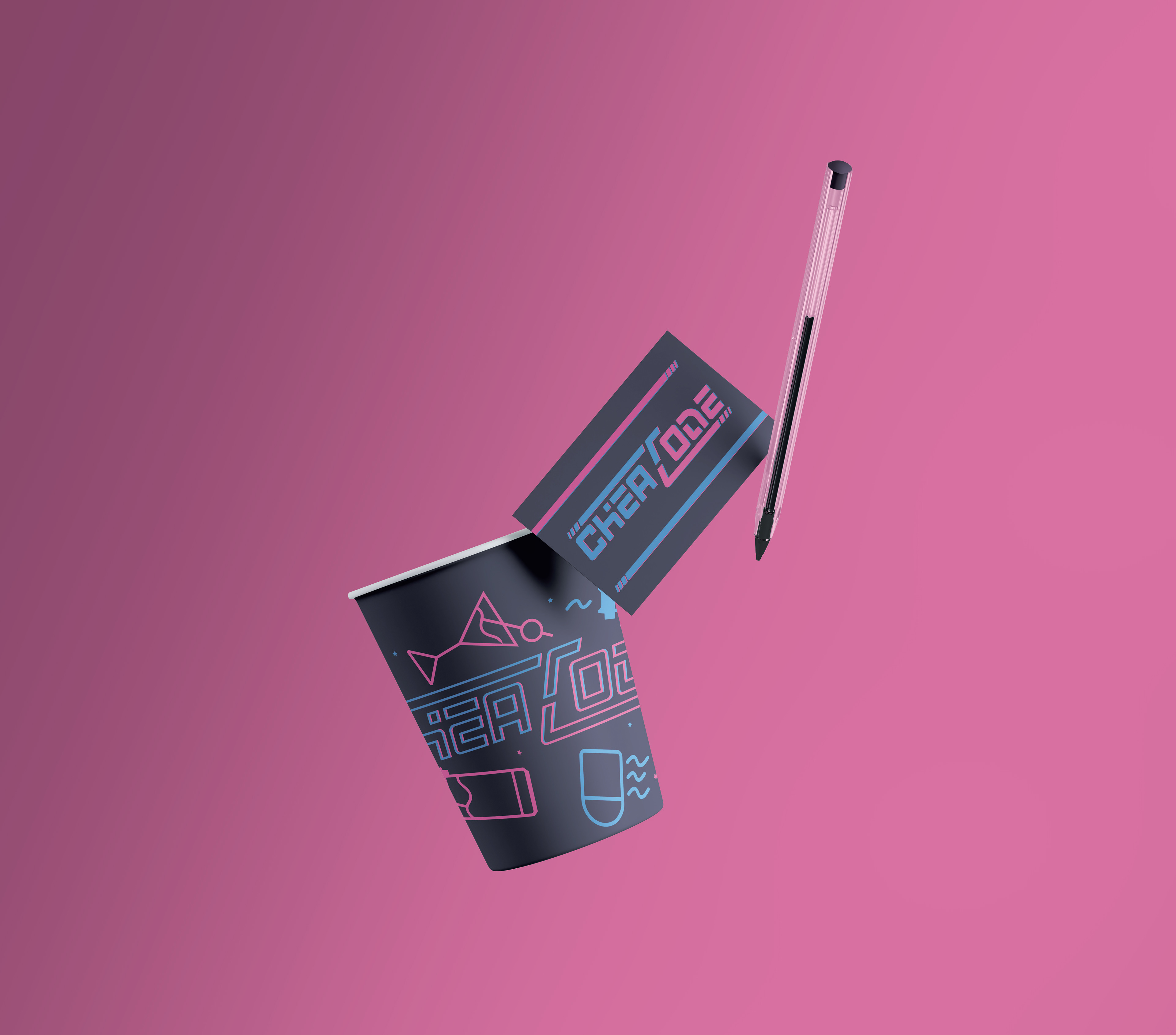 CheatCode’s style aims to be loud and active. I incorporated shades of blue and magenta that can be used in white and dark background.