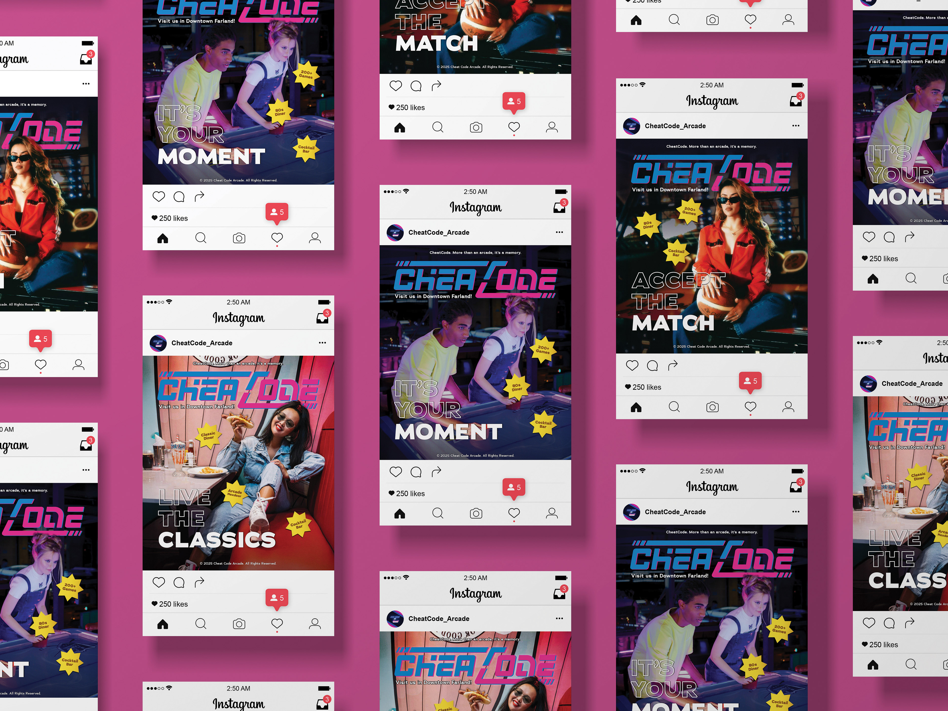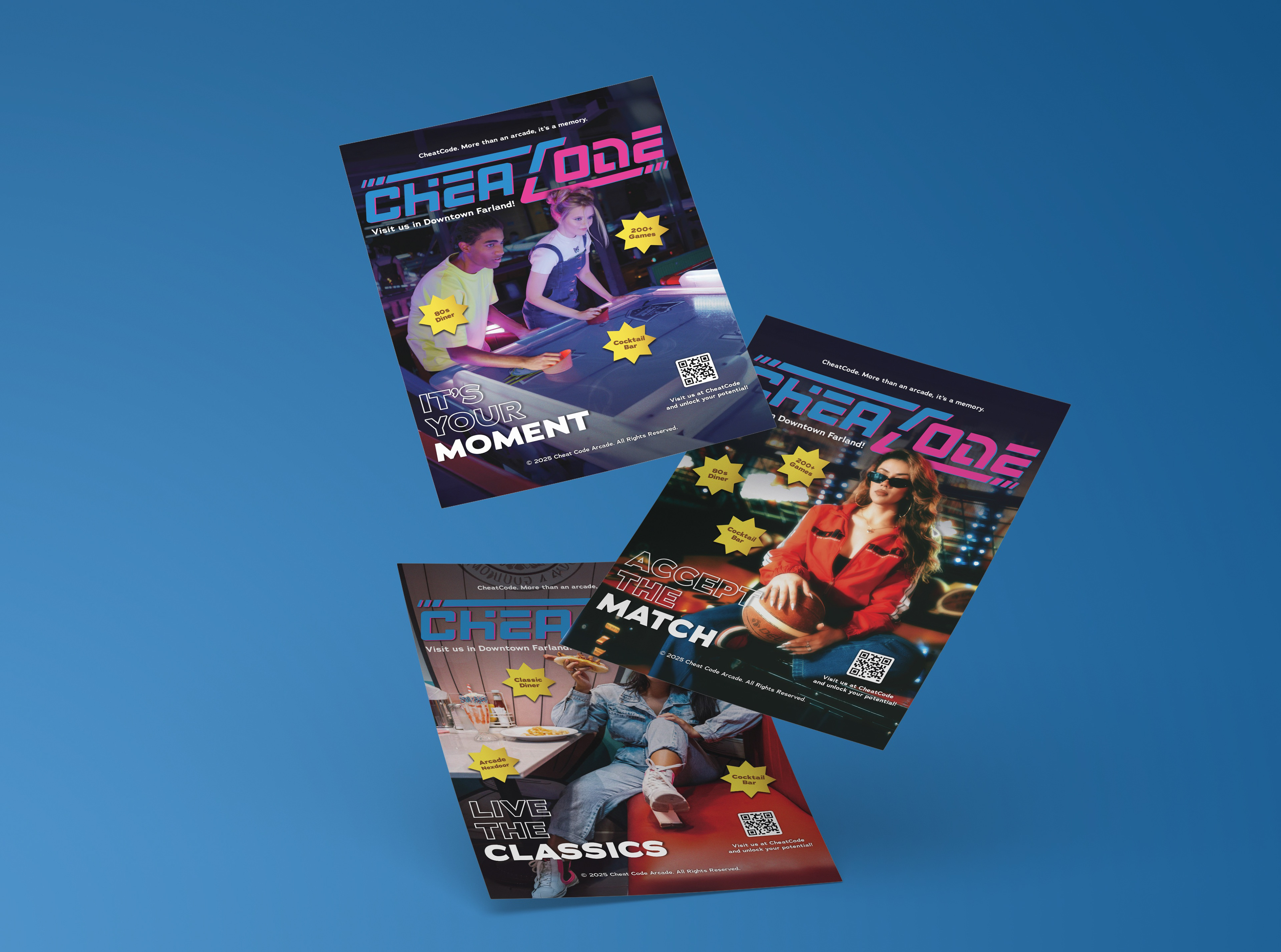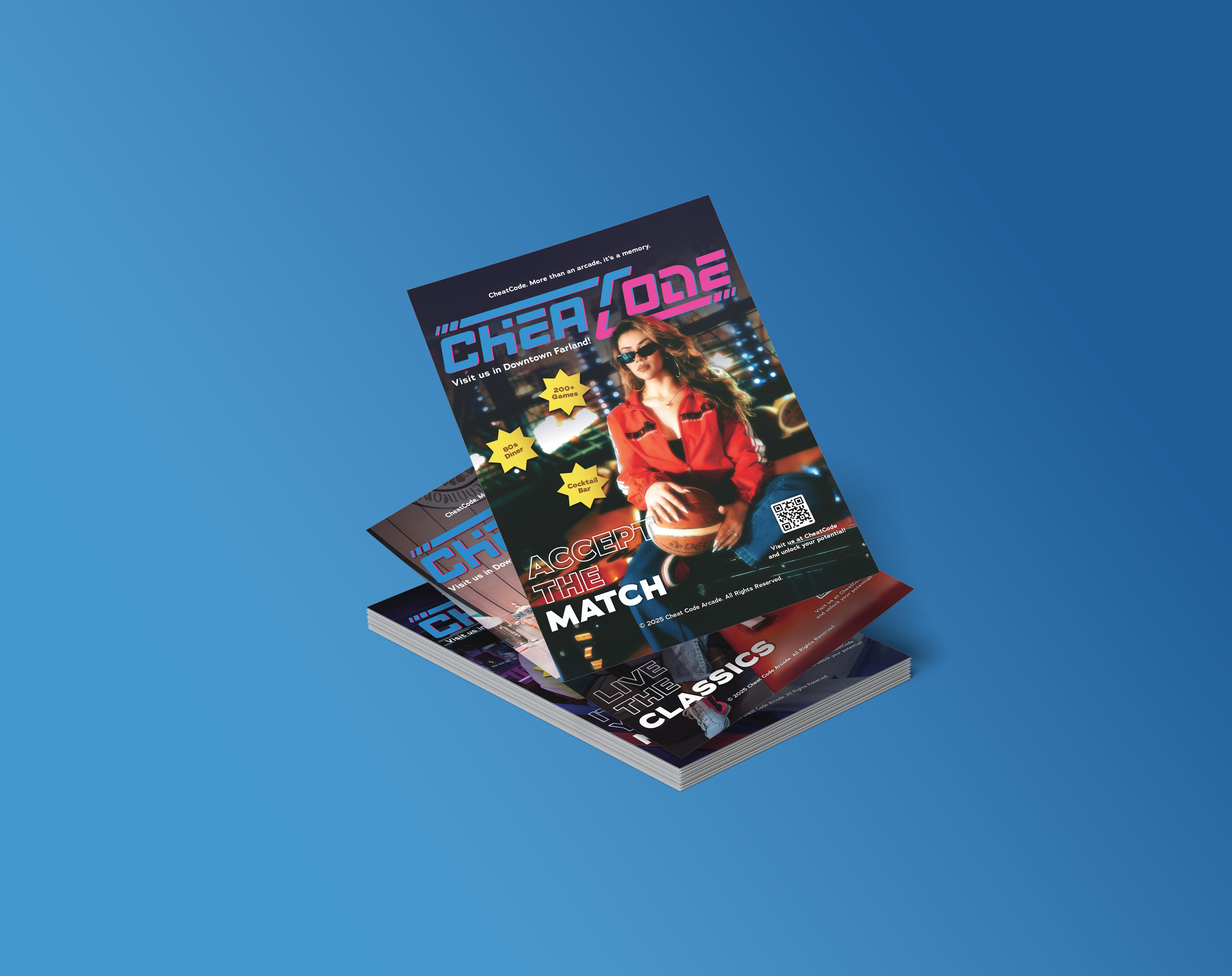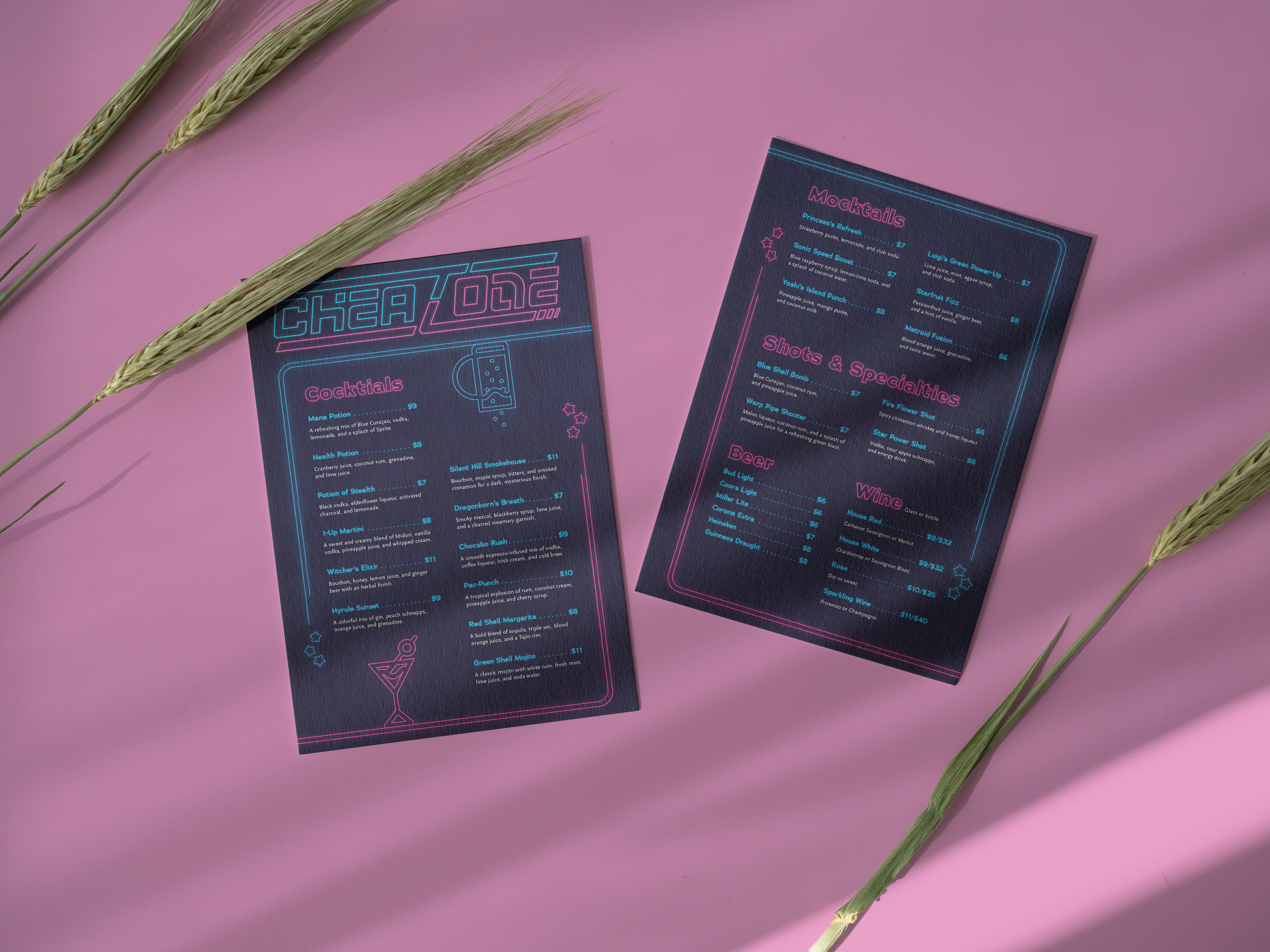 CheatCode’s style aims to be loud and active. I incorporated shades of blue and magenta that can be used in white and dark background.